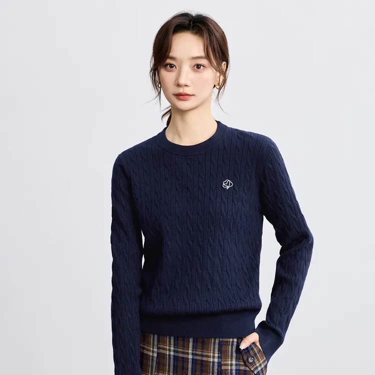 【莫瑞系穿搭】茵曼25秋季简约圆领麻花针织衫通勤百搭显瘦打底毛衣
